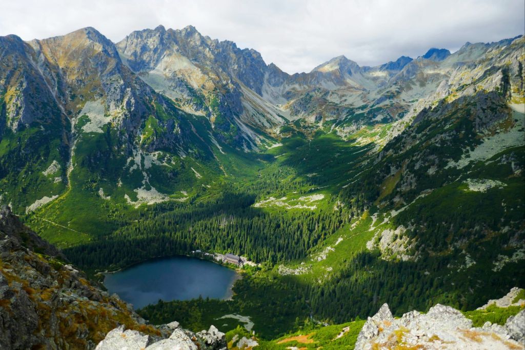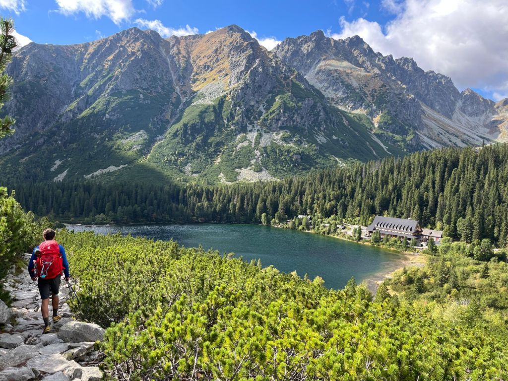 El viento y la niebla nos acompañaron hasta Sliezsky dom, donde por fin abrió el día. Nos jalamos un porridge de los buenos y seguimos hasta Popradské pleso, un lago precioso en uno de los valles más bonitos de los Tatras.