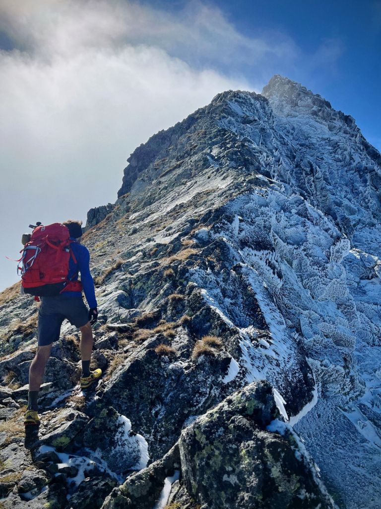 La idea era subir al Ľadový štít (2628 m) pasando por la cresta del Paso del Caballo (Kon) y bajar haciendo una circular. Más tarde nos dimos cuenta de que era inviable, al menos para nuestro nivel.